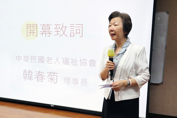 本會韓春菊理事長親臨開幕致詞,期盼推廣介護食理念,為長者打造安全進食與照護尊嚴的環境。